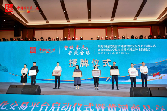 仪式上,乐陵市杨安镇调味品集团有限公司还与黄河商品交易市场股份有限公司、金融机构、原产地交收仓库、香辛料集采合作联盟企业进行了现场签约,并为首批经纪会员代表、检测机构授牌。